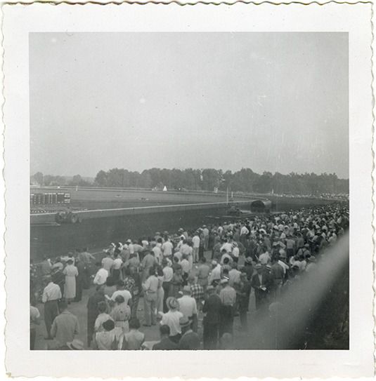Part of an album of photographs taken by Cathie Monticelli. Inscribed inside front cover: "My book, at the race track, 1952 by Cathie Monticelli, 1426 Pearson Ave., Ferndale 20, Michigan."