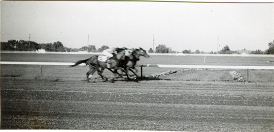 Part of an album of photographs taken by Cathie Monticelli. Inscribed inside front cover: "My book, at the race track, 1952 by Cathie Monticelli, 1426 Pearson Ave., Ferndale 20, Michigan."