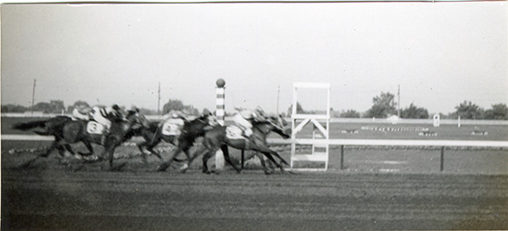 Part of an album of photographs taken by Cathie Monticelli. Inscribed inside front cover: "My book, at the race track, 1952 by Cathie Monticelli, 1426 Pearson Ave., Ferndale 20, Michigan."