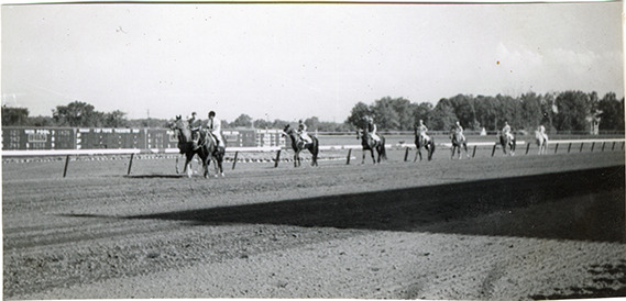 Part of an album of photographs taken by Cathie Monticelli. Inscribed inside front cover: "My book, at the race track, 1952 by Cathie Monticelli, 1426 Pearson Ave., Ferndale 20, Michigan."