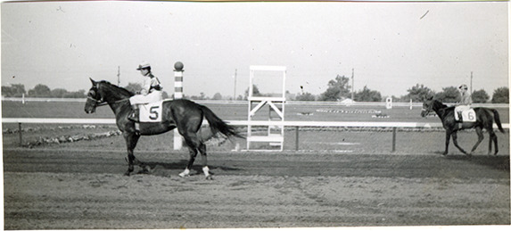 Part of an album of photographs taken by Cathie Monticelli. Inscribed inside front cover: "My book, at the race track, 1952 by Cathie Monticelli, 1426 Pearson Ave., Ferndale 20, Michigan."