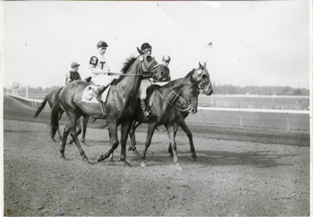 Part of an album of photographs taken by Cathie Monticelli. Inscribed inside front cover: "My book, at the race track, 1952 by Cathie Monticelli, 1426 Pearson Ave., Ferndale 20, Michigan."