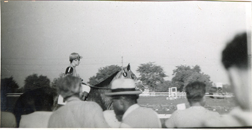 Part of an album of photographs taken by Cathie Monticelli. Inscribed inside front cover: "My book, at the race track, 1952 by Cathie Monticelli, 1426 Pearson Ave., Ferndale 20, Michigan."