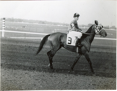 Jockey Gordon McCrosky riding horse "Nostalgic," Hazel Park Raceway