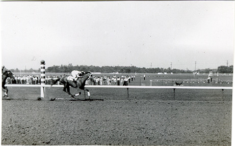 Part of an album of photographs taken by Cathie Monticelli. Inscribed inside front cover: "My book, at the race track, 1952 by Cathie Monticelli, 1426 Pearson Ave., Ferndale 20, Michigan."