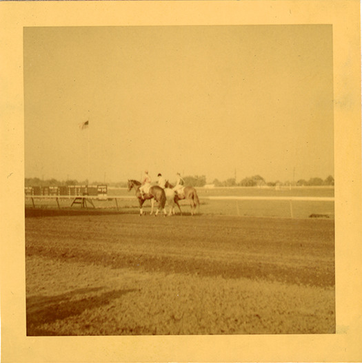 Part of an album of photographs taken by Cathie Monticelli. Inscribed inside front cover: "My book, at the race track, 1952 by Cathie Monticelli, 1426 Pearson Ave., Ferndale 20, Michigan."