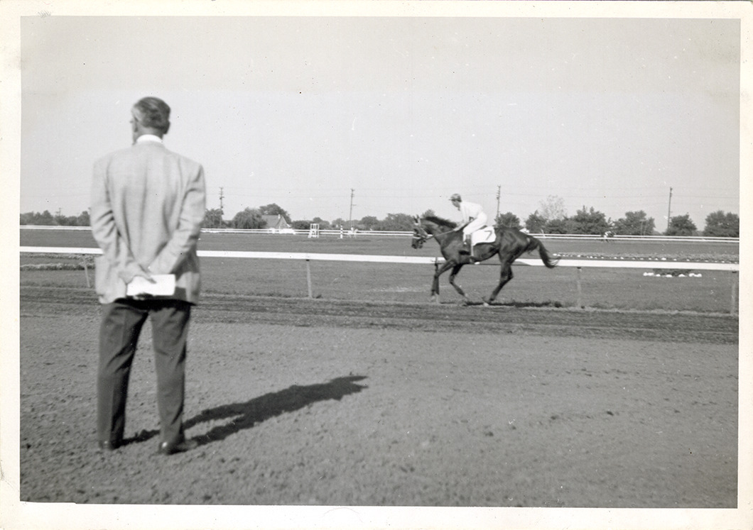 Part of an album of photographs taken by Cathie Monticelli. Inscribed inside front cover: "My book, at the race track, 1952 by Cathie Monticelli, 1426 Pearson Ave., Ferndale 20, Michigan."