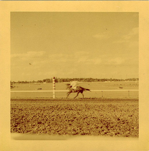 Part of an album of photographs taken by Cathie Monticelli. Inscribed inside front cover: "My book, at the race track, 1952 by Cathie Monticelli, 1426 Pearson Ave., Ferndale 20, Michigan."