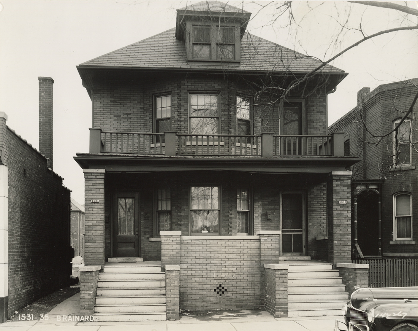 Favorite this☆ Duplex at 1531-1535 Brainard Description: View of a two-story brick duplex located at 1531-1535 Brainard. House has covered entry porch, bay windows and separate entrances. Printed on front: "1531-35 Brainard." Details Resource ID: bh028321 Subject: Brick houses--Michigan--Detroit Architecture, Domestic--Michigan--Detroit Streets--Michigan--Detroit Photographic prints Date Issued: Unknown year Format: 1 photographic print mounted on fabric ; 7.5 x 9.5 in. Member of: Burton Historical Collection Filing Location: D/Streets-Brainard Rights: Physical rights are retained by DPL. Copyright is retained in accordance with U.S. copyright laws.