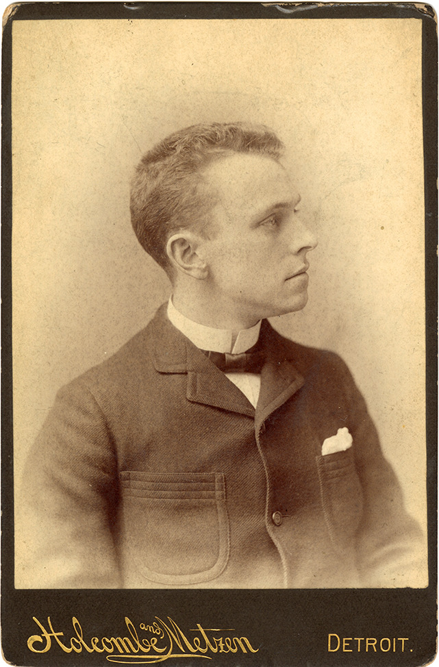 Portrait of Albert Henry Finn. Printed on front: "Holcombe and Metzen, Detroit." Printed on back: "Holcombe and Metzen. 146 and 148 Woodward Ave., Detroit, Mich. Duplicates or enlargements can be had at any time." Handwritten on back: "Albert Henry Finn, about 1895."