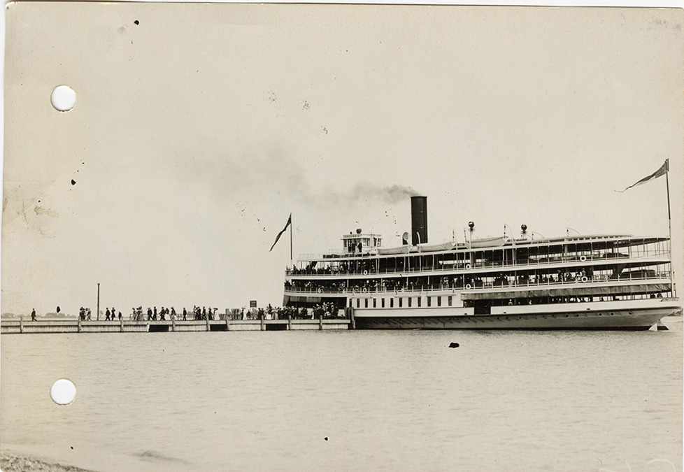 Favorite this☆ Passengers disembarking ferry "Columbia," 1912 Knights Templar convention Description: View of passengers disembarking the ferry "Columbia" at Belle Isle during the 1912 Knights Templar convention. Handwritten on back: "Steamer Columbia landing Knights Templar at Belle Isle." Details Resource ID: bh028476 Subject: Ferries--Michigan--Detroit Columbia (Ship : 1902- ) Knights Templar (Masonic order) Freemasons--Michigan--Detroit Belle Isle Park (Detroit, Mich.) Congresses and conventions--Michigan--Detroit Photographic prints Date Issued: 1912-06 Format: 1 photographic print ; 4.5 x 6.5 in. Member of: Burton Historical Collection Filing Location: D/Organizations-Freemasons-Knights Templar Rights: Physical rights are retained by DPL. Copyright is retained in accordance with U.S. copyright laws.