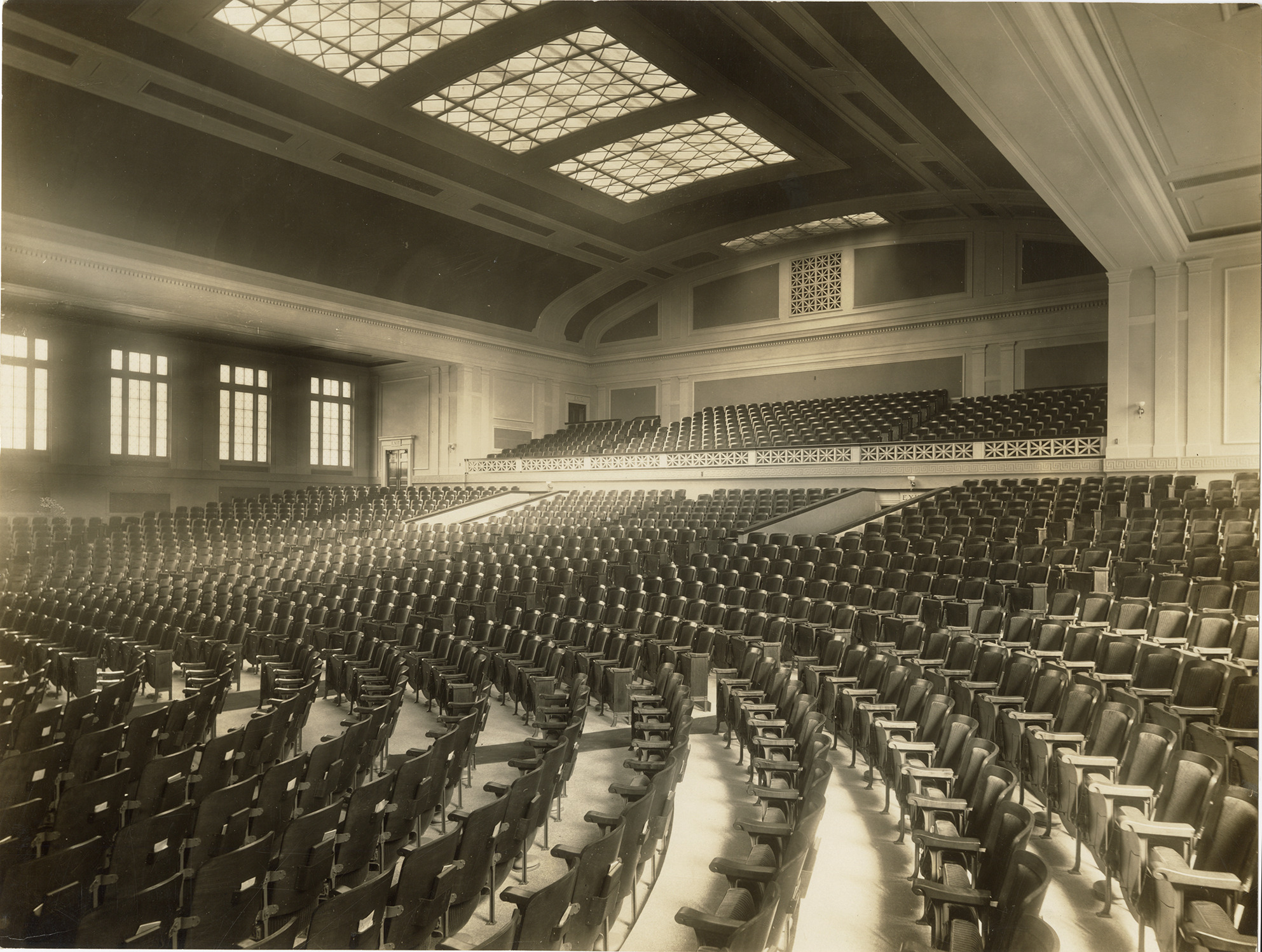 Favorite this☆ Auditorium, First Church of Christ, Scientist Description: View of auditorium at the First Church of Christ, Scientist. Semicircular auditorium has rows of seats. Printed on back: "Ch. Sci Church, Hancock & Cass, S.W. corner." Details Resource ID: bh028699 Creator: Hance, George W. Subject: Auditoriums--Michigan--Detroit Christian Science church buildings--Michigan--Detroit Photographers--Michigan--Detroit Photographic prints Date Issued: Unknown year Format: 1 photographic print mounted on fabric ; 10 x 13.25 in. Member of: Burton Historical Collection Filing Location: LD/Churches-Church of Christ Scientist-First Rights: Physical rights are retained by DPL. Copyright is retained in accordance with U.S. copyright laws.