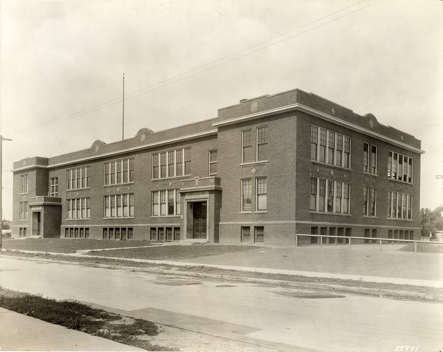 View of the Charles Hanneman School. Handwritten on back: "Hanneman School."