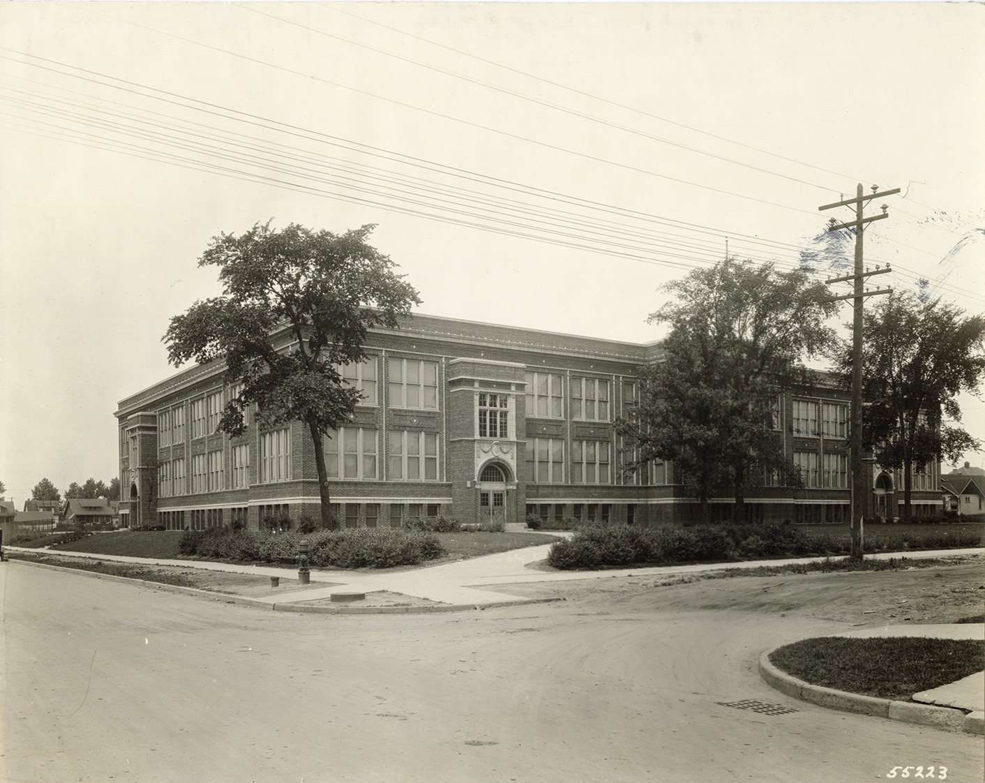 View of the Pattengill School. Stamped on back: "Manning Bros., commercial photographers. 504-505 Lincoln Building. Corner State and Park Sts., Detroit, Mich." Handwritten on back: "Pattengill School."