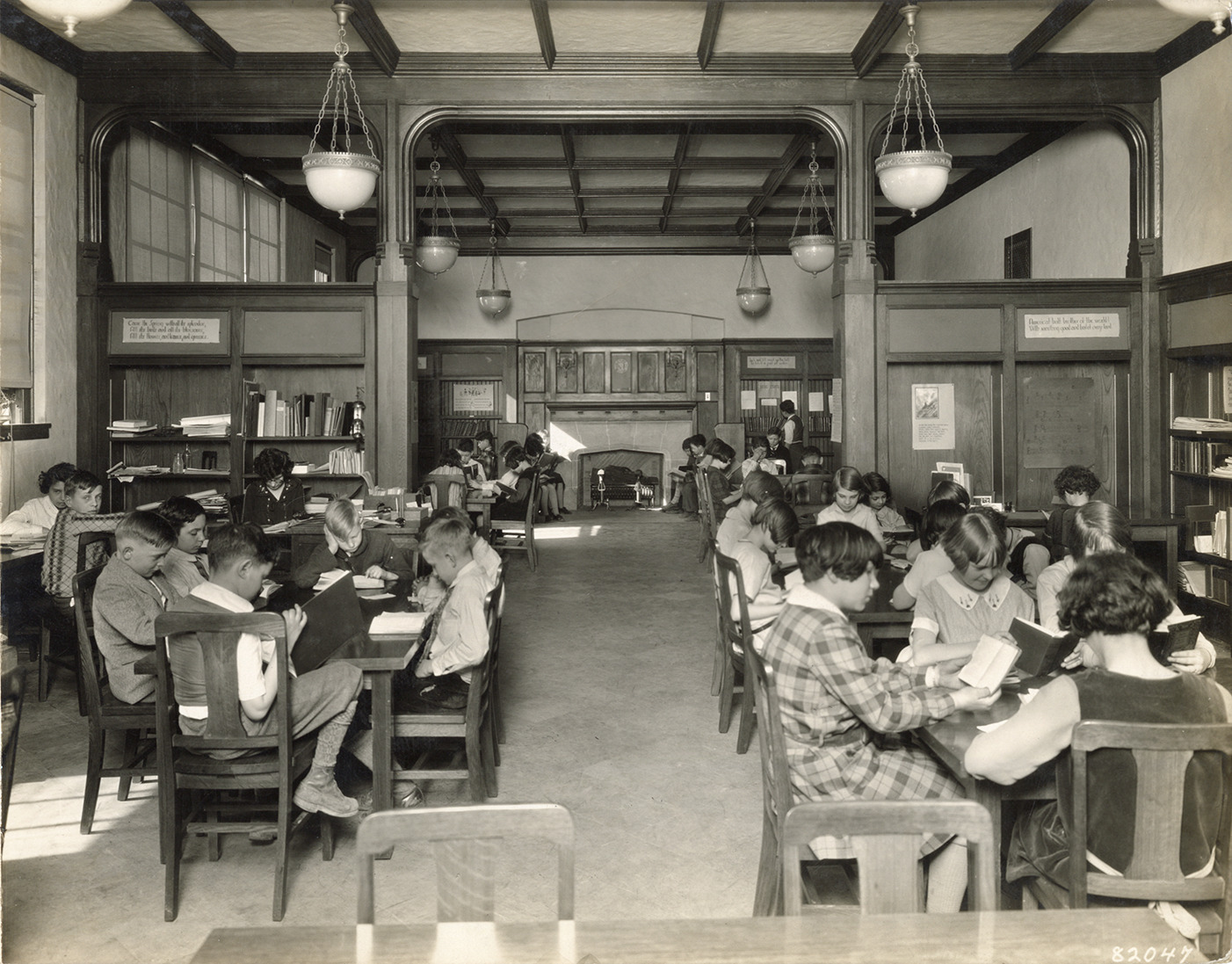 Favorite this☆ Children reading in library, Roosevelt School Description: View of children reading in the library at Roosevelt School. Fireplace in background. Handwritten on back: "Roosevelt Elementary, library." Details Resource ID: bh028950 Subject: School children--Michigan--Detroit School libraries--Michigan--Detroit Elementary school buildings--Michigan--Detroit Fireplaces--Michigan--Detroit Photographic prints Date Issued: Unknown year Format: 1 photographic print mounted on fabric ; 7.25 x 9.25 in. Member of: Burton Historical Collection Filing Location: D/Schools-Roosevelt Rights: Physical rights are retained by DPL. Copyright is retained in accordance with U.S. copyright laws.