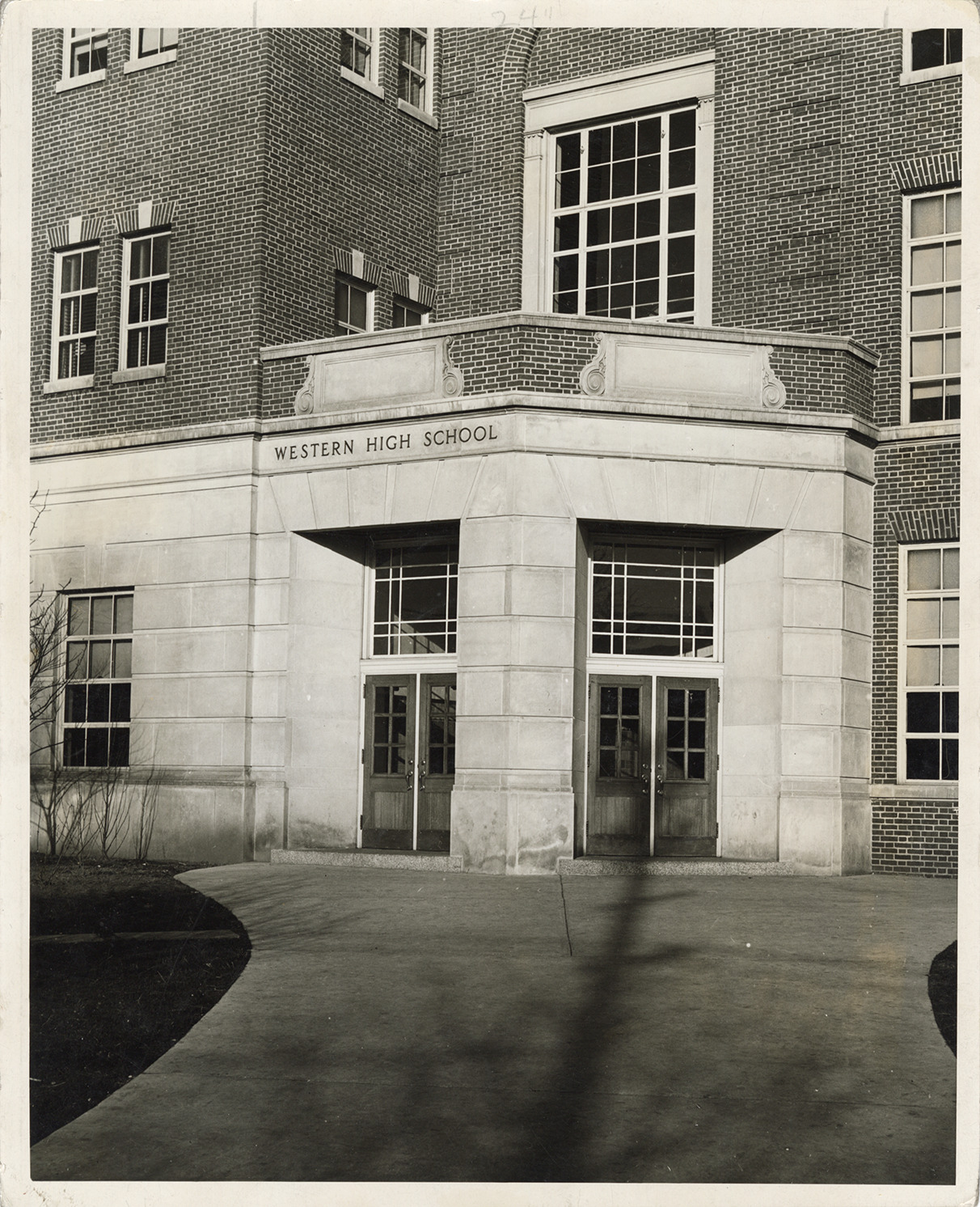 Favorite this☆ Entrance, Western High School Description: View of the entrance to Western High School. Typed on back: "Front entrance, south." Handwritten on back: "Western H. Sch. bldgs. and grounds." Details Resource ID: bh028983 Subject: Doorways--Michigan--Detroit High school buildings--Michigan--Detroit Photographic prints Date Issued: Unknown year Format: 1 photographic print ; 10 x 8 in. Member of: Burton Historical Collection Filing Location: D/Schools-Western High Rights: Physical rights are retained by DPL. Copyright is retained in accordance with U.S. copyright laws.