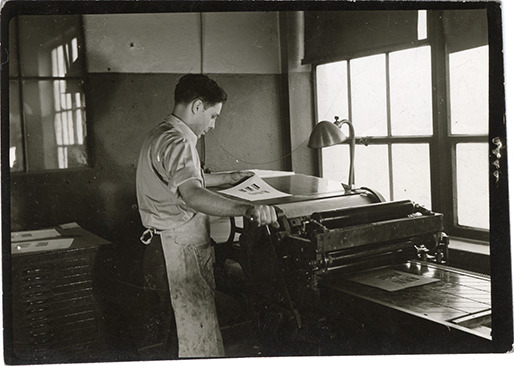 Favorite this☆ Employee working at Evans-Winter-Hebb Description: View of printer working at Evans-Winter-Hebb. Handwritten on back: "Proofing." Details Resource ID: bh029042 Subject: Evans-Winter-Hebb Printing industry--Michigan--Detroit--Employees Printing industry--Michigan--Detroit Advertising agencies--Michigan--Detroit Photographic prints Date Issued: Unknown year Format: 1 photographic print ; 2.25 x 3.25 in. Member of: Burton Historical Collection Filing Location: D/Industries and business houses-Evans-Winter-Hebb Rights: Physical rights are retained by DPL. Copyright is retained in accordance with U.S. copyright laws.