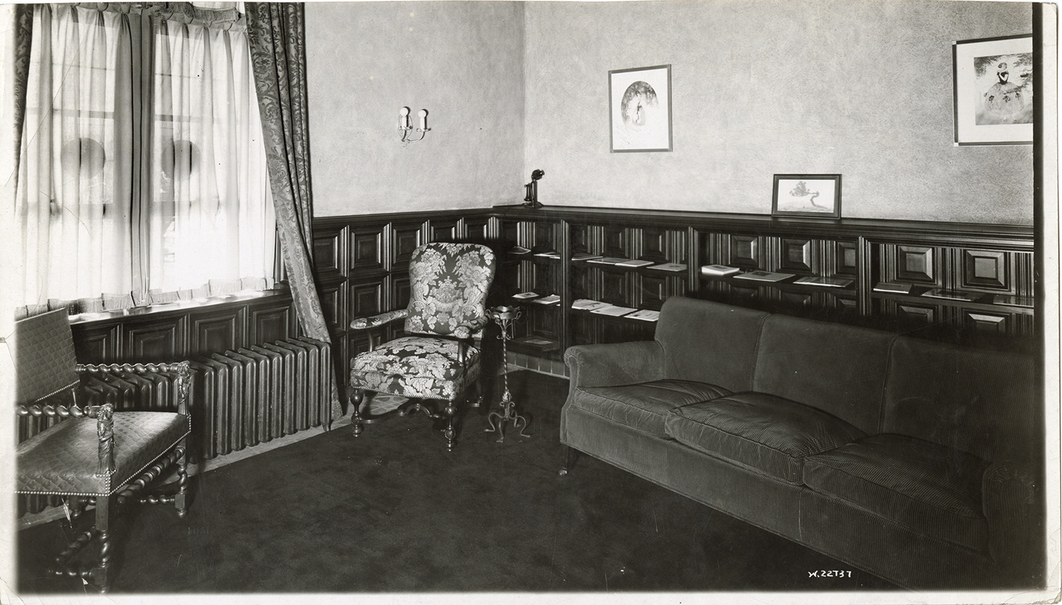 Favorite this☆ Library, Evans-Winter-Hebb Description: View of the library at Evans-Winter-Hebb, showing armchairs and sofa. Artwork displayed on walls; window and radiator on left. Handwritten on back: "Corner of library." Details Resource ID: bh029044 Subject: Evans-Winter-Hebb Libraries--Michigan--Detroit Printing industry--Michigan--Detroit Advertising agencies--Michigan--Detroit Chairs--Michigan--Detroit Sofas--Michigan--Detroit Photographic prints Date Issued: Unknown year Format: 1 photographic print ; 5.75 x 10 in. Member of: Burton Historical Collection Filing Location: D/Industries and business houses-Evans-Winter-Hebb Rights: Physical rights are retained by DPL. Copyright is retained in accordance with U.S. copyright laws.