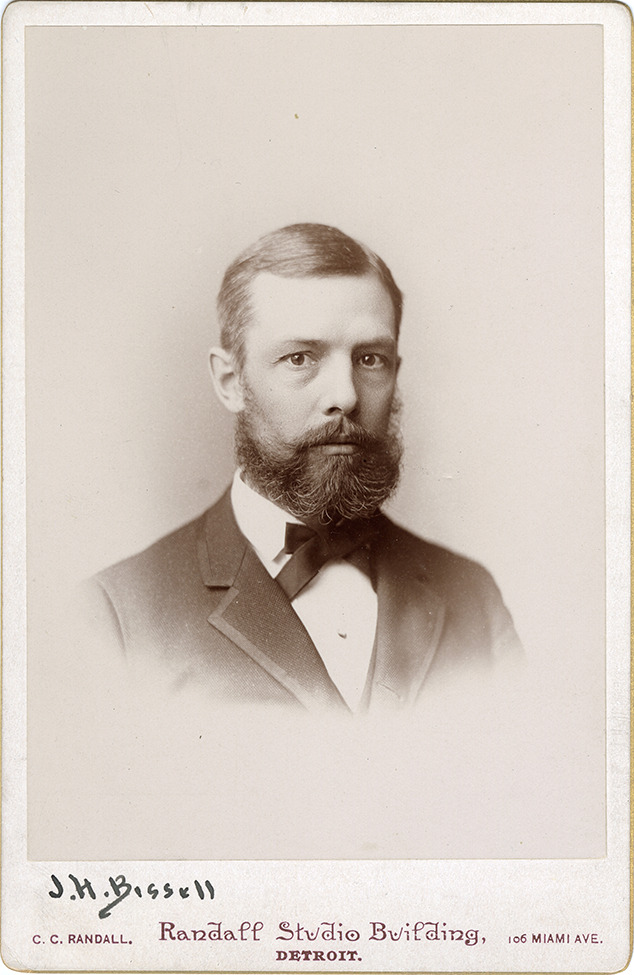 Portrait of John H. Bissell. Printed on front: "C.C. Randall, Randall Studio Building, 106 Miami Ave., Detroit." Handwritten on front: "J.H. Bissell." Handwritten on back: "Bissell, John H., 1846-1925. Dau[ghter?] Lillian, Mrs. W.E.S. Strong, Park Ave., New York City."