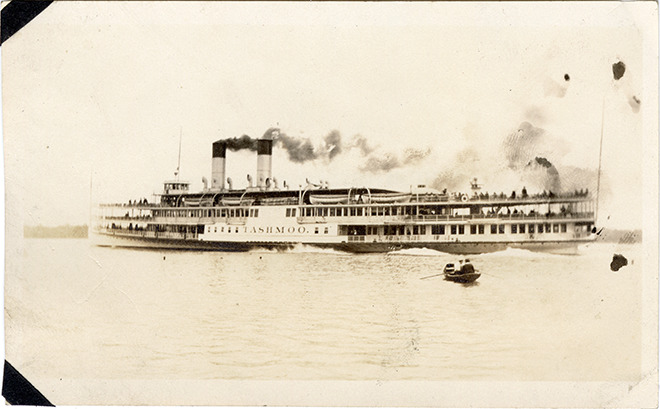 Favorite this☆ Steamer "Tashmoo" Description: View of the steamer "Tashmoo" on the Detroit River. Details Resource ID: bh029102 Subject: Steamboats--Michigan--Detroit Excursion boats--Michigan--Detroit Photographic prints Date Issued: Unknown year Format: 1 photographic print ; 2.75 x 4.5 in. Member of: Burton Historical Collection Filing Location: GL/Boats and boating-Tashmoo Rights: Physical rights are retained by DPL. Copyright is retained in accordance with U.S. copyright laws.