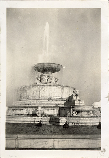 View of the James Scott Fountain. Fountain is located on Belle Isle and was designed by Cass Gilbert. Handwritten on back: "1938."