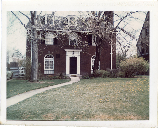 View of a two-story brick house at 2954 Burns in the Indian Village neighborhood of Detroit, Michigan. The house, formerly owned by J. Halsey McKown, was built in 1924. Handwritten on back: "2954 Burns Avenue. Historic Indian Village, Detroit, Michigan. Crowley-McKown house, built 1925-25 at a cost of $33,000.00. Built by John Owen III."
