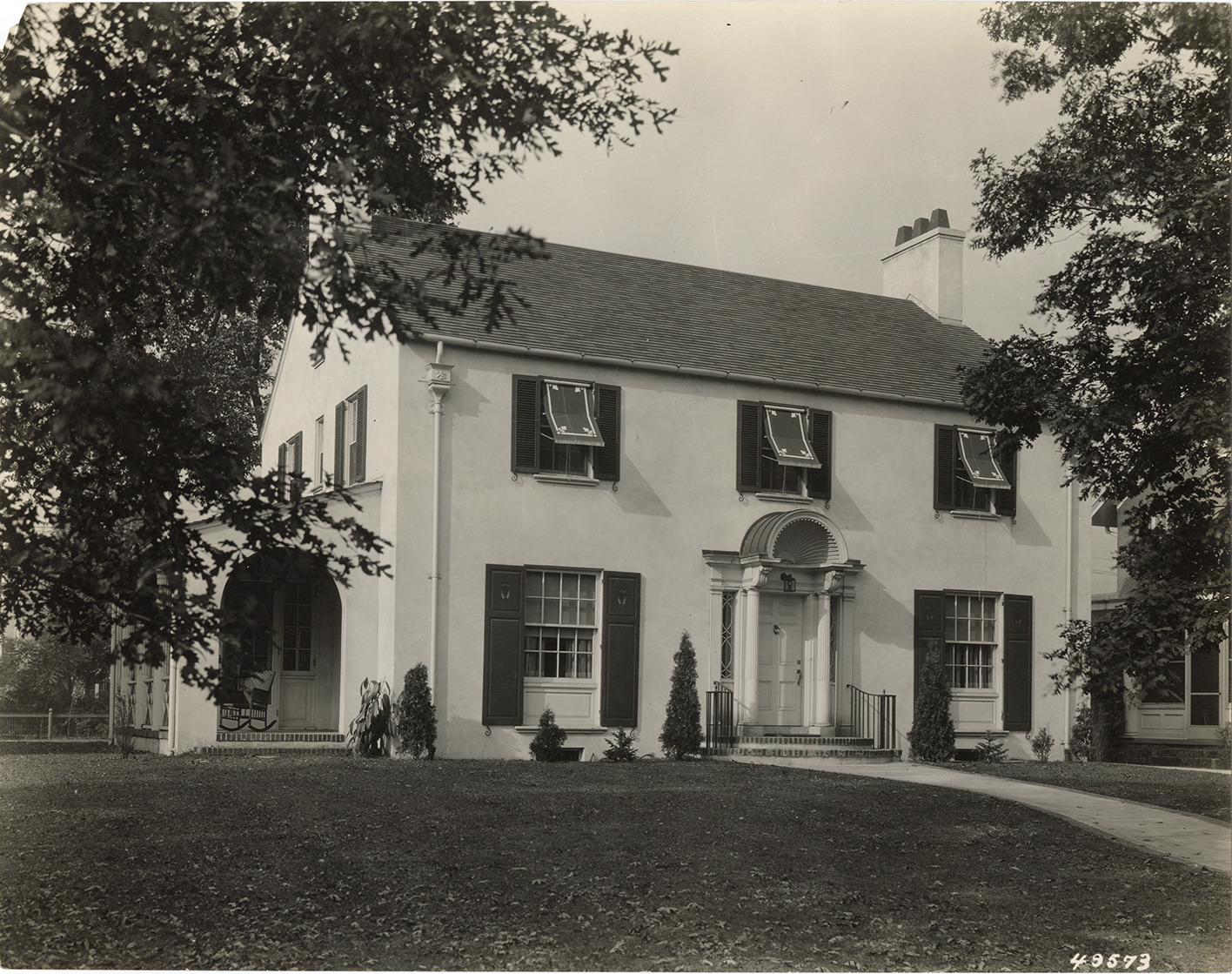 View of the John Trost house, located at 2151 Burns Ave. House was designed by J. Ivan Dise. Stamped on back: "Manning Bros., commercial photographers. 504-505 Lincoln Building. Corner State and Park Sts., Detroit, Mich." Handwritten on back: "Residence of John Trost, Detroit, Mich. J. Ivan Dise, archt."