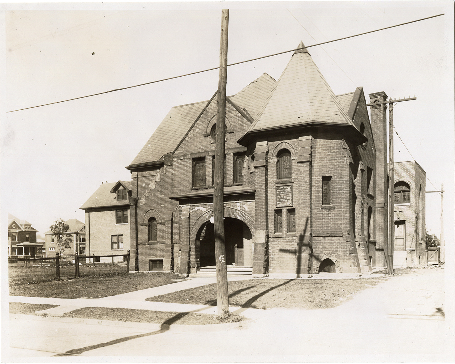 Favorite this☆ Ferry Avenue Baptist Church Description: View of the Ferry Avenue Baptist Church. Details Resource ID: bh029336 Subject: Baptist church buildings--Michigan--Detroit Brick churches--Michigan--Detroit Photographic prints Date Issued: Unknown year Format: 1 photographic print mounted on fabric ; 7.75 x 9.75 in. Member of: Burton Historical Collection Filing Location: D/Churches-Baptist-Ferry Ave. Rights: Physical rights are retained by DPL. Copyright is retained in accordance with U.S. copyright laws.