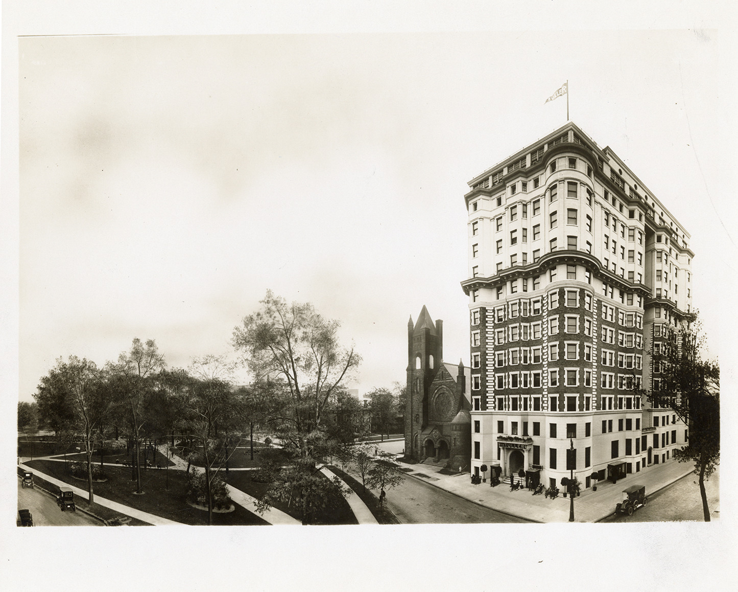 Favorite this☆ Hotel Tuller Description: View of the Hotel Tuller. Church of Our Father and Grand Circus Park on left. Handwritten on back: "Tuller Hotel." Details Resource ID: bh029531 Subject: Hotels--Michigan--Detroit Parks--Michigan--Detroit Protestant church buildings--Michigan--Detroit Universalist churches--Michigan--Detroit Photographic prints Date Issued: Unknown year Format: 1 photographic print mounted on fabric ; 7.75 x 9.75 in. Member of: Burton Historical Collection Filing Location: D/Hotels-Tuller Rights: Physical rights are retained by DPL. Copyright is retained in accordance with U.S. copyright laws.