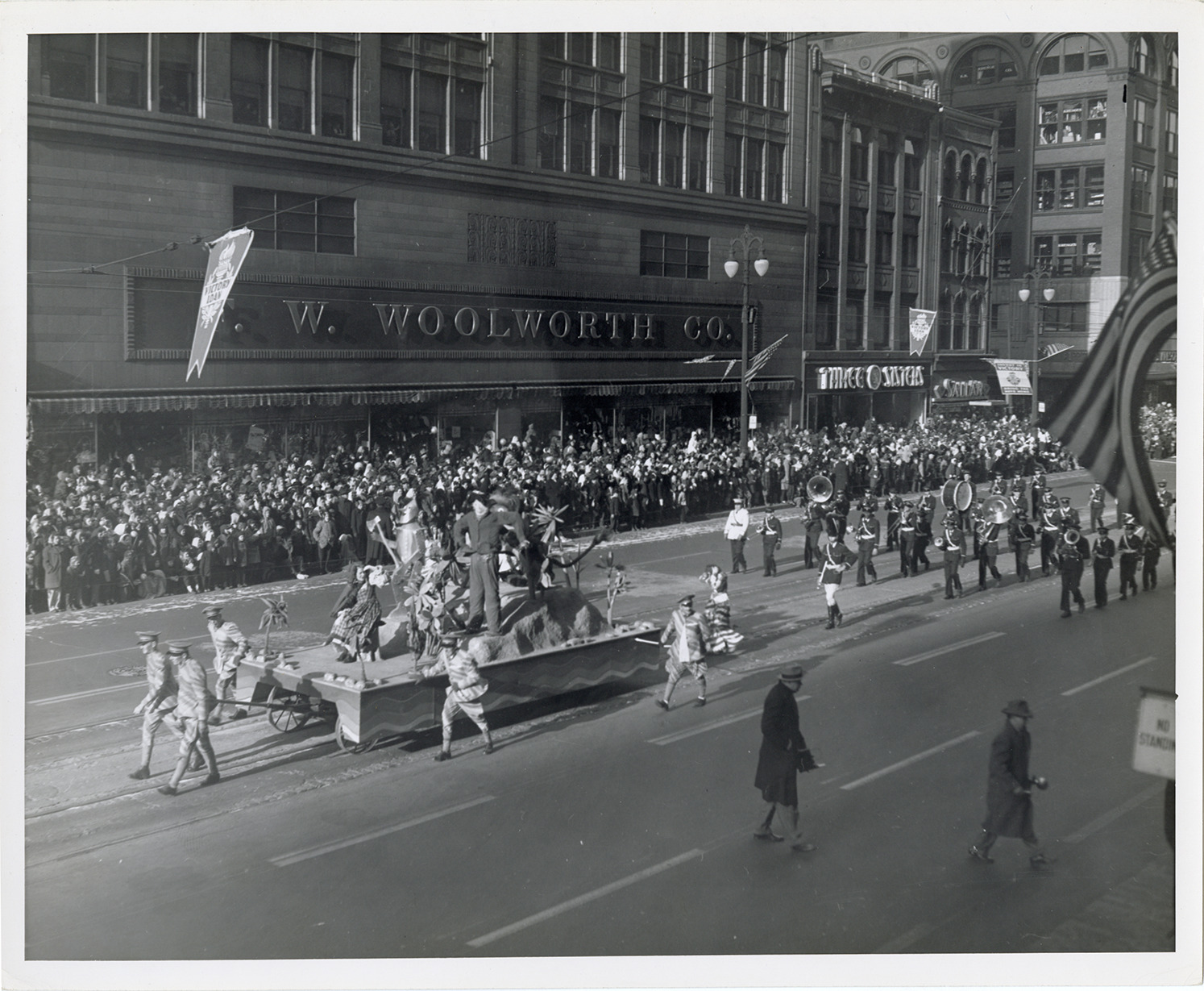 Favorite this☆ Wizard of Oz parade float, 1945 J.L. Hudson Thanksgiving Day parade Description: View of a Wizard of Oz parade float and marching band during the 1945 J.L. Hudson Thanksgiving Day Parade. Spectators and F.W. Woolworth store in background. Details Resource ID: bh029563 Subject: Parade floats--Michigan--Detroit Marching bands--Michigan--Detroit Parades--Michigan--Detroit J.L. Hudson Company Thanksgiving Day--Michigan--Detroit Photographic prints Date Issued: 1945-11-22 Format: 1 photographic print ; 8 x 10 in. Member of: Burton Historical Collection Filing Location: MS/J.L. Hudson Company, 21:7 Rights: Physical rights are retained by DPL. Copyright is retained in accordance with U.S. copyright laws.
