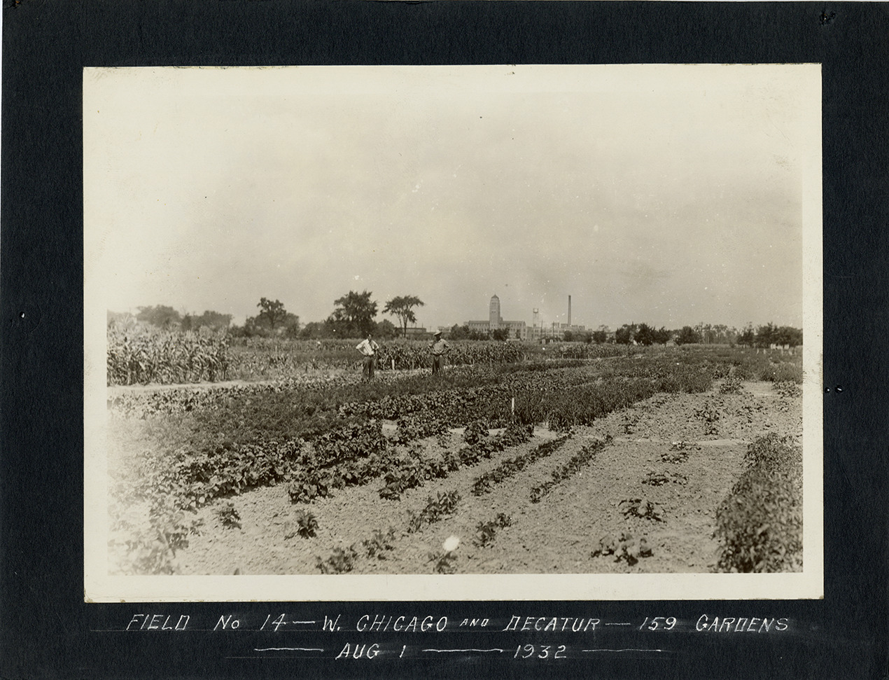 Favorite this☆ Two men posing in Field No. 14, Detroit Thrift Gardens Description: View of two men posing in Field No. 14 at the Detroit Thrift Gardens. Handwritten on front: "Field No. 14, W. Chicago and Decatur, 159 gardens. Aug. 1, 1932." Details Resource ID: bh029605 Subject: Detroit Thrift Gardens Vegetable gardening--Michigan--Detroit Detroit (Mich.). Mayor's Unemployment Relief Committee. Detroit Thrift Gardens Photographic prints Date Issued: 1932-08-01 Format: 1 photographic print mounted on stock ; image 5 x 7 in. Member of: Burton Historical Collection Filing Location: D/Gardens-Detroit Thrift Rights: Physical rights are retained by DPL. Copyright is retained in accordance with U.S. copyright laws.