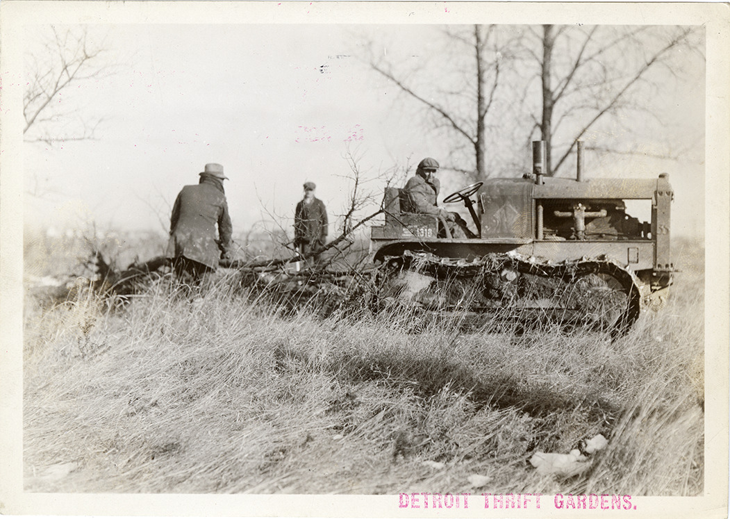 Favorite this☆ Men plowing fields with tractors, Detroit Thrift Gardens Description: View of men clearing fields with tractors and plows at the Detroit Thrift Gardens. Stamped on front: "Detroit Thrift Gardens." Stamped on back: "Detroit Thrift Gardens." Details Resource ID: bh029640 Subject: Tractors--Michigan--Detroit Plows--Michigan--Detroit Detroit Thrift Gardens Detroit (Mich.). Mayor's Unemployment Relief Committee. Detroit Thrift Gardens Photographic prints Date Issued: Unknown year Format: 1 photographic print ; 5 x 7 in. Member of: Burton Historical Collection Filing Location: D/Gardens-Detroit Thrift Rights: Physical rights are retained by DPL. Copyright is retained in accordance with U.S. copyright laws.