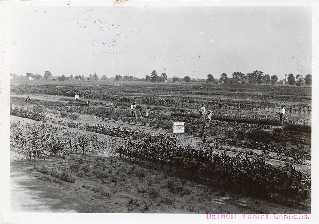 Favorite this☆ Men working in field, Detroit Thrift Gardens Description: View of men working in a field at the Detroit Thrift Gardens. "No trespassing" sign in field. Stamped on front: "Detroit Thrift Gardens." Stamped on back: "Detroit Thrift Gardens." Details Resource ID: bh029643 Subject: Detroit Thrift Gardens Vegetable gardening--Michigan--Detroit Detroit (Mich.). Mayor's Unemployment Relief Committee. Detroit Thrift Gardens Photographic prints Date Issued: Unknown year Format: 1 photographic print ; 5 x 7 in. Member of: Burton Historical Collection Filing Location: D/Gardens-Detroit Thrift Rights: Physical rights are retained by DPL. Copyright is retained in accordance with U.S. copyright laws.