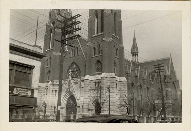 Favorite this☆ Sweetest Heart of Mary Church Description: View of the Sweetest Heart of Mary Church. Handwritten on back: "Sweetest Heart of Mary. Russell & Canfield. Brick vestibule, elevated seats." Details Resource ID: bh029688 Subject: Sweetest Heart of Mary Church (Detroit, Mich.) Catholic church buildings--Michigan--Detroit Photographic prints Date Issued: Unknown year Format: 1 photographic print ; 3.5 x 5 in. Member of: Burton Historical Collection Filing Location: D/Churches-R.C.-Sweetest Heart of Mary Rights: Physical rights are retained by DPL. Copyright is retained in accordance with U.S. copyright laws.