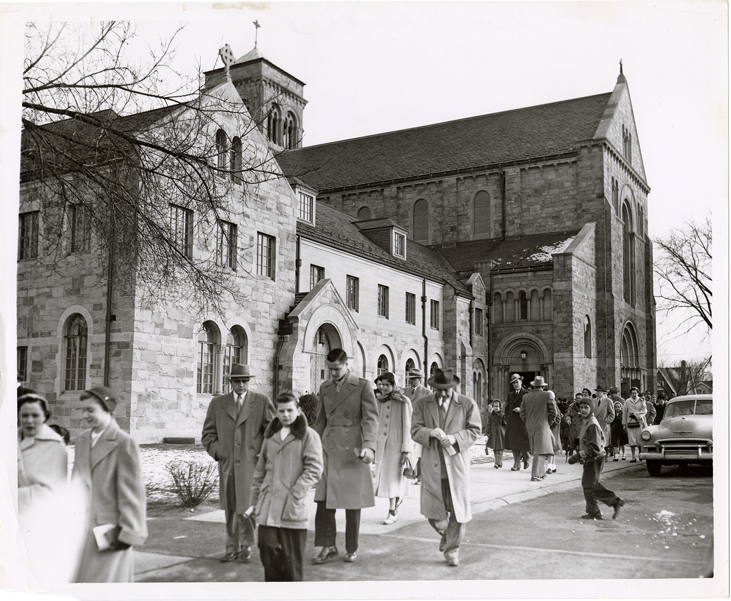 Favorite this☆ St. Mary's of Redford Catholic Church Description: View of parishioners leaving the St. Mary's of Redford Catholic Church. "Stamped on back: "Free Press photo, Dec 20, 1953." Handwritten on back: "St. Mary's Church, Gd. River & St. Mary's." Details Resource ID: bh029696 Creator: Detroit Free Press Subject: Catholic church buildings--Michigan--Detroit Photographic prints Date Issued: 1953 Format: 1 photographic print ; 8.25 x 10 in. Member of: Burton Historical Collection Filing Location: D/Churches-R.C.-St. Mary's of Redford Rights: Physical rights are retained by DPL. Copyright is retained in accordance with U.S. copyright laws.