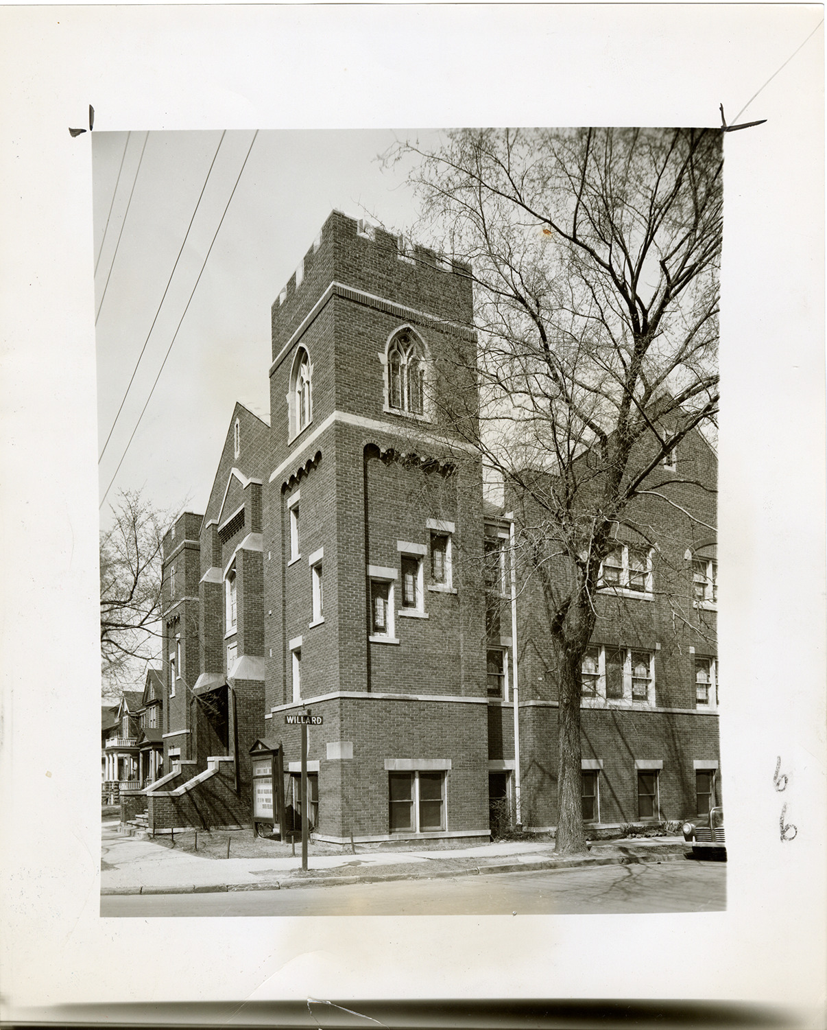 View of the Seventh Day Adventist Church. Clipping on back: "Dedication services for the Van Dyke Seventh-Day Adventist Church will be held at 11 a.m. Sunday with a number of church leaders attending. The Rev. L.E. Lenheim, president of the Lake Union Conference, will preach the dedicatory sermon. The new church is debt free. It was purchased for $75,000 from the Van Dyke Methodist congregation. All churches of the Seventh-Day denomination in the Detroit area will join in the Sunday services. The Rev. J.B. Habenicht is pastor at Van Dyke church." Stamped on back: "State Photographic, E.J. Santee, 16131 Harper Ave., Detroit 24, Michigan. TU. 1-7010. VA. 2-0800."