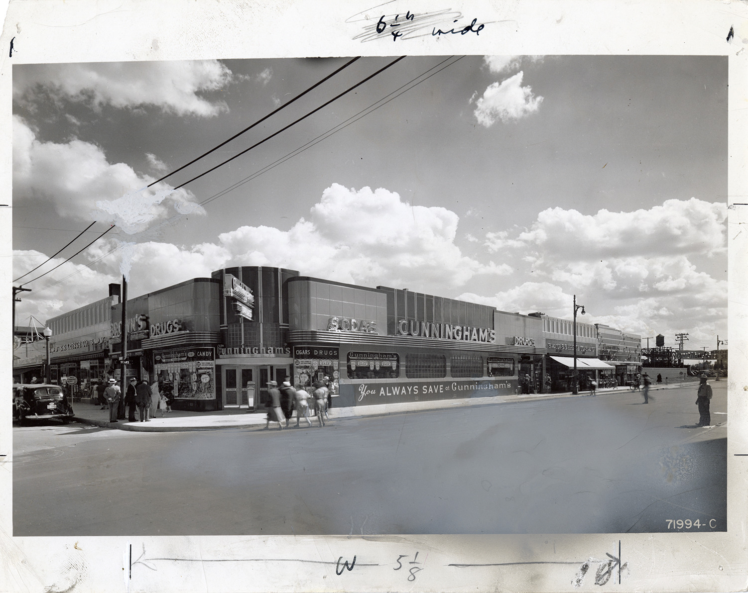 Favorite this☆ Cunningham's drugstore Description: View of Cunningham's drugstore. Sign on building reads: "You always save at Cunningham's." Pedestrians on corner. Handwritten on back: "Cunningham's drug stores." Details Resource ID: bh029731 Subject: Drugstores--Michigan--Detroit Photographic prints Date Issued: 1939 (year approximate) Format: 1 photographic print ; 8 x 10 in. Member of: Burton Historical Collection Filing Location: D/Industries and business houses-Cunningham's Rights: Physical rights are retained by DPL. Copyright is retained in accordance with U.S. copyright laws.