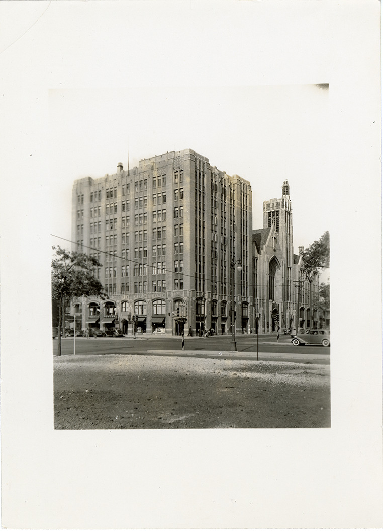 View of the Boulevard Temple Methodist Episcopal Church. Handwritten on back: "Blvd. Temple M.E. Church. W. Grnd. Blvd. at 12th."