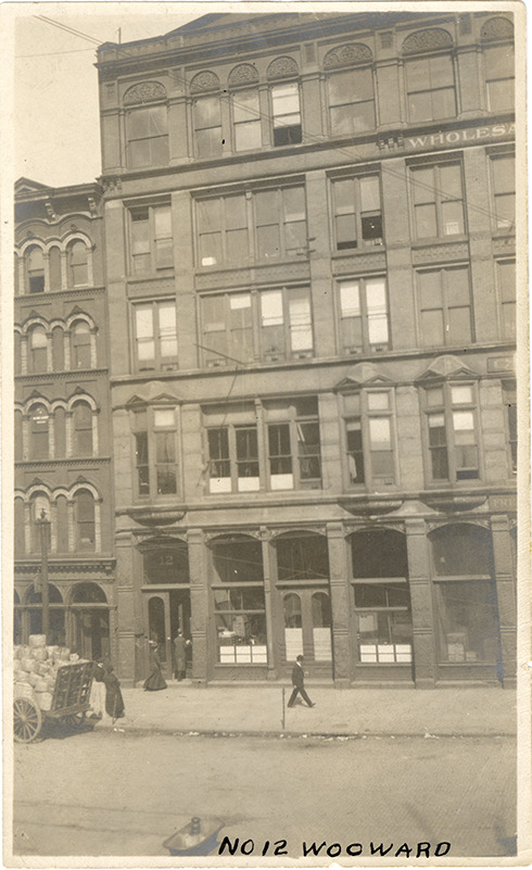 Favorite this☆ Detroit United Railway general offices Description: View of the Detroit United Railway (D.U.R.) general offices located at 12 Woodward Avenue. Handwritten on front: "No. 12 Wooward [sic]." Handwritten on back: "c. 1909." Details Resource ID: bh029894 Subject: Office buildings--Michigan--Detroit Detroit United Railway Photographic prints Date Issued: 1909 (year approximate) Format: 1 photographic print ; 5.25 x 3.25 in. Member of: Burton Historical Collection Filing Location: D/Street railroads-Detroit United Railway Rights: Physical rights are retained by DPL. Copyright is retained in accordance with U.S. copyright laws.