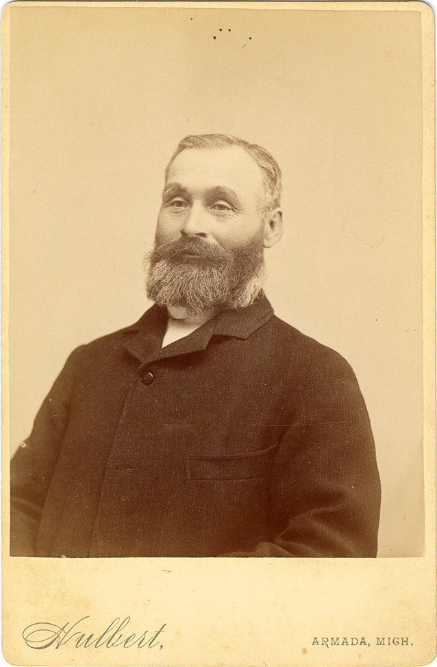 Portrait of an unidentified man. Printed on front: "Hulbert, Armada, Mich."