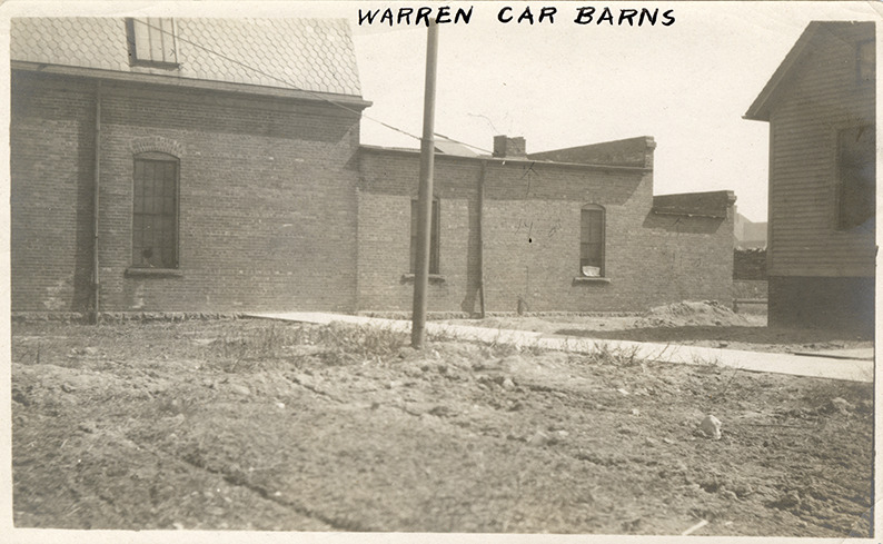 Favorite this☆ Warren Avenue car barn, Detroit United Railway Description: View of the Warren Ave. car barn for the Detroit United Railway. Handwritten on front: "Warren car barns." Handwritten on back: "Warren car barns, west side at south end." Details Resource ID: bh029979 Subject: Garages--Michigan--Detroit Cable cars (Streetcars)--Michigan--Detroit Detroit United Railway Street-railroads--Michigan--Detroit Photographic prints Date Issued: Unknown year Format: 1 photographic print ; 3.25 x 5.25 in. Member of: Burton Historical Collection Filing Location: D/Street railroads-Detroit United Railway Rights: Physical rights are retained by DPL. Copyright is retained in accordance with U.S. copyright laws.
