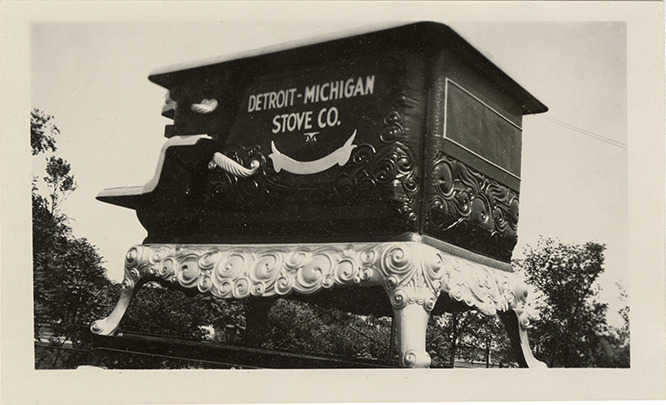 Favorite this☆ Stove replica, Detroit-Michigan Stove Co. Description: View of an immense replica of a stove manufactured by the Detroit-Michigan Stove Company. Details Resource ID: bh030015 Subject: Stoves--Michigan--Detroit Detroit-Michigan Stove Company Stove industry and trade--Michigan--Detroit Photographic prints Date Issued: Unknown year Format: 1 photographic print ; 2.75 x 4.5 in. Member of: Burton Historical Collection Filing Location: D/Industries and business houses-Detroit-Michigan Stove Co. Rights: Physical rights are retained by DPL. Copyright is retained in accordance with U.S. copyright laws.