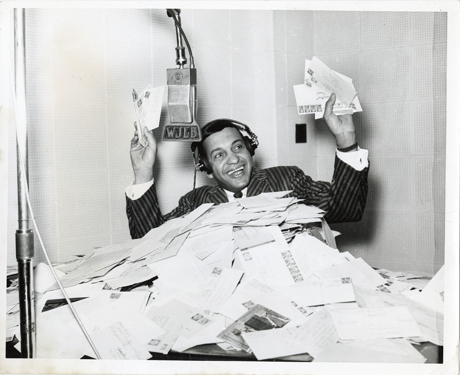 Favorite this☆ Ernie Durham Description: View of WJLB radio personality Ernie Durham posing with fan mail. Printed on back: "WJLB radio personality." Details Resource ID: bh030027 Subject: Durham, Ernie African American radio broadcasters--Michigan--Detroit Fan mail--Michigan--Detroit Photographic prints Date Issued: Unknown year Format: 1 photographic print ; 8 x 10 in. Member of: Burton Historical Collection Filing Location: Reading Room File Rights: Physical rights are retained by DPL. Copyright is retained in accordance with U.S. copyright laws.