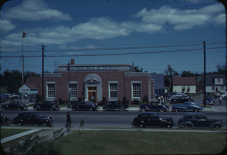Favorite this☆ National Bank of Detroit, Van Dyke and Eight Mile Road Description: View of National Bank of Detroit located at Van Dyke and 8 Mile Rd. Cars parked in street. Label on mount: "Parking, off street. Bank, Van Dyke, 8 Mile." Details Resource ID: bh030040 Subject: Bank buildings--Michigan--Detroit Automobiles--Michigan--Detroit Slides Date Issued: Unknown year Format: 1 slide in glass mount : col. ; 2 x 2 in. Member of: Burton Historical Collection Negative Number: Slide no. 2640 Rights: Physical rights are retained by DPL. Copyright is retained in accordance with U.S. copyright laws.