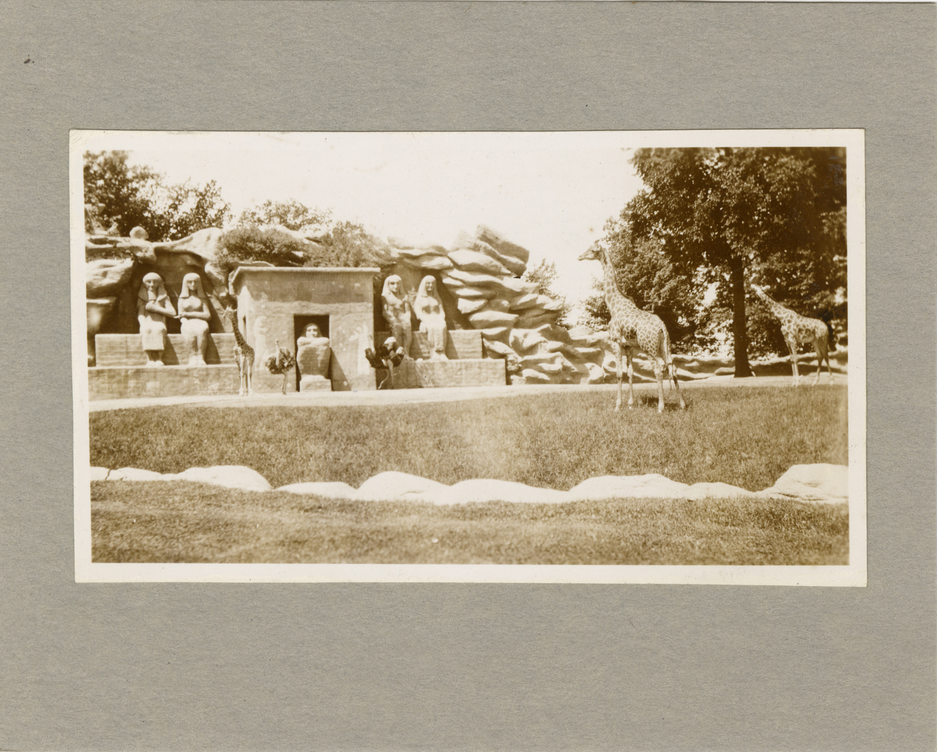 Favorite this☆ Giraffe exhibit, Detroit Zoo Description: View of the giraffe exhibit at the Detroit Zoo, showing replicas of Egyptian statues and temple. Handwritten on back: "Detroit Free Press, photo contest, 3-30-1948." Details Resource ID: bh030084 Subject: Detroit Zoo Zoos--Michigan--Detroit Giraffe--Michigan--Detroit Sculpture, Egyptian--Michigan--Detroit Photographic prints Date Issued: 1948 Format: 1 photographic print mounted on stock ; image 2.5 x 4.25 in. Member of: Burton Historical Collection Filing Location: D/Parks-Zoological Rights: Physical rights are retained by DPL. Copyright is retained in accordance with U.S. copyright laws.
