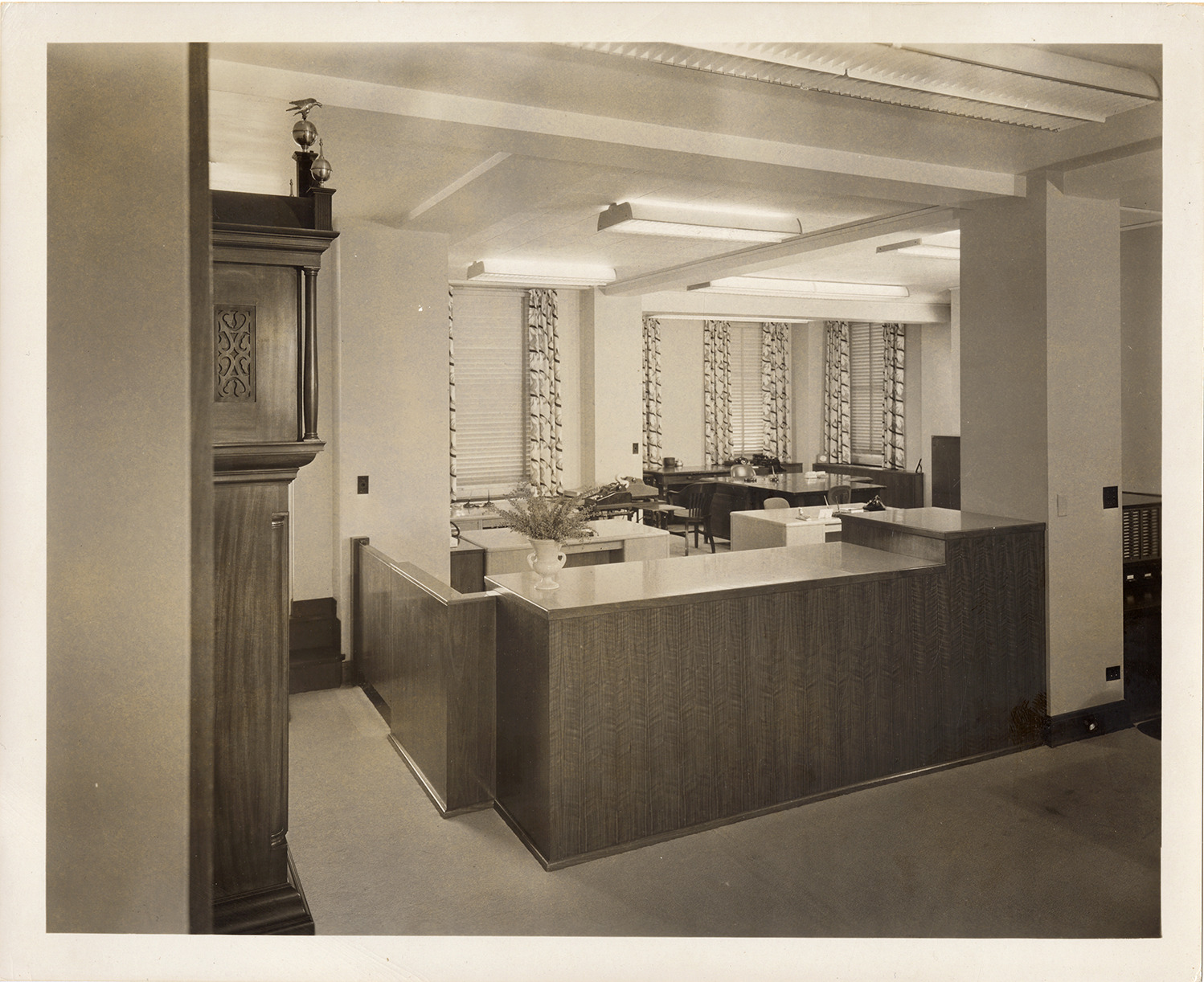 Favorite this☆ Office, Penobscot Building Description: View of an office in the Penobscot Building. Counter in foreground; several desks and chairs in background. Details Resource ID: bh030131 Subject: Offices--Michigan--Detroit Office furniture--Michigan--Detroit Desks--Michigan--Detroit Office buildings--Michigan--Detroit Photographic prints Date Issued: Unknown year Format: 1 photographic print ; 8 x 10 in. Member of: Burton Historical Collection Filing Location: D/Buildings-Penobscot Rights: Physical rights are retained by DPL. Copyright is retained in accordance with U.S. copyright laws.