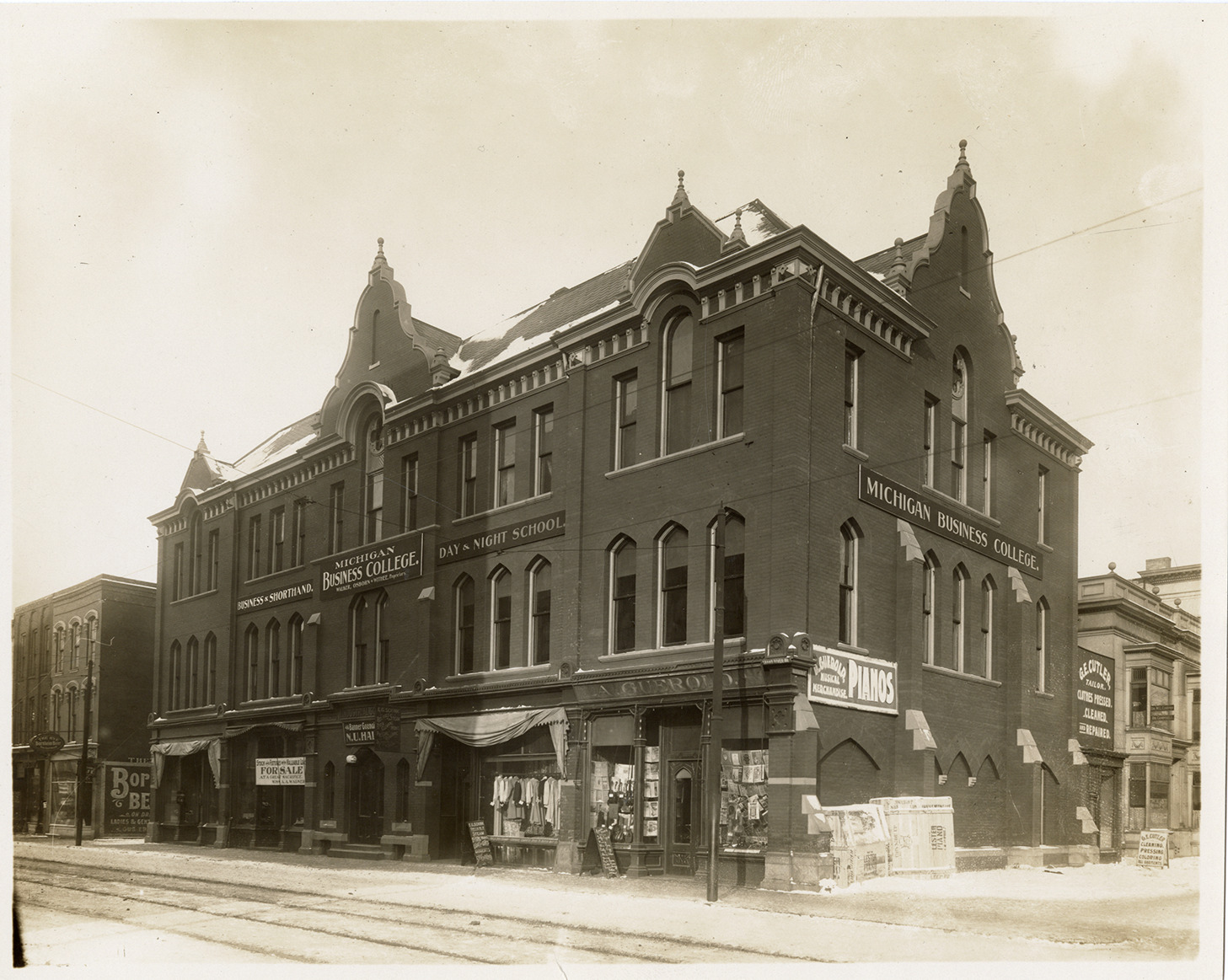 Favorite this☆ Michigan Business College Description: View of the Michigan Business College. Sign on building reads: "Michigan Business College, business & shorthand, day & night school." Storefront on ground level. Handwritten on back: "Michigan Business College." Details Resource ID: bh030146 Subject: College buildings--Michigan--Detroit Business schools--Michigan--Detroit Photographic prints Date Issued: Unknown year Format: 1 photographic print mounted on fabric ; 7.75 x 9.75 in. Member of: Burton Historical Collection Filing Location: D/Colleges and universities-Michigan Business College Rights: Physical rights are retained by DPL. Copyright is retained in accordance with U.S. copyright laws.