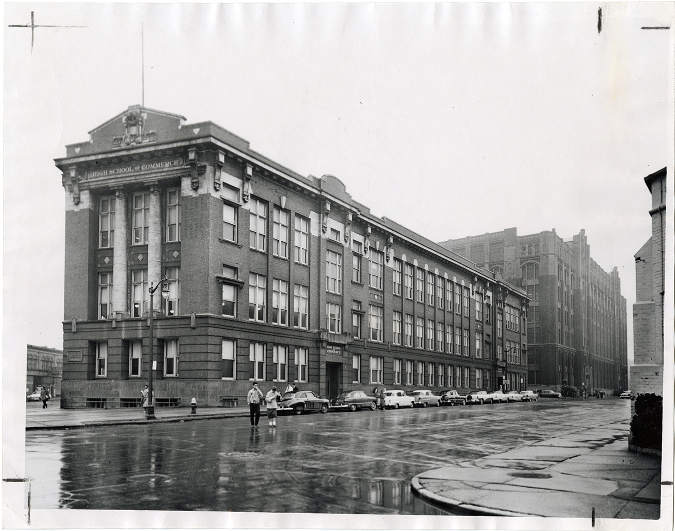 Favorite this☆ High School of Commerce Description: View of two students crossing the street in front of the High School of Commerce. Stamped on back: "May 5, 1957." Details Resource ID: bh030178 Creator: Detroit Free Press Subject: High school buildings--Michigan--Detroit Photographic prints Date Issued: 1957 Format: 1 photographic print ; 7 x 9 in. Member of: Burton Historical Collection Filing Location: D/Schools-High School of Commerce Rights: Physical rights are retained by DPL. Copyright is retained in accordance with U.S. copyright laws.