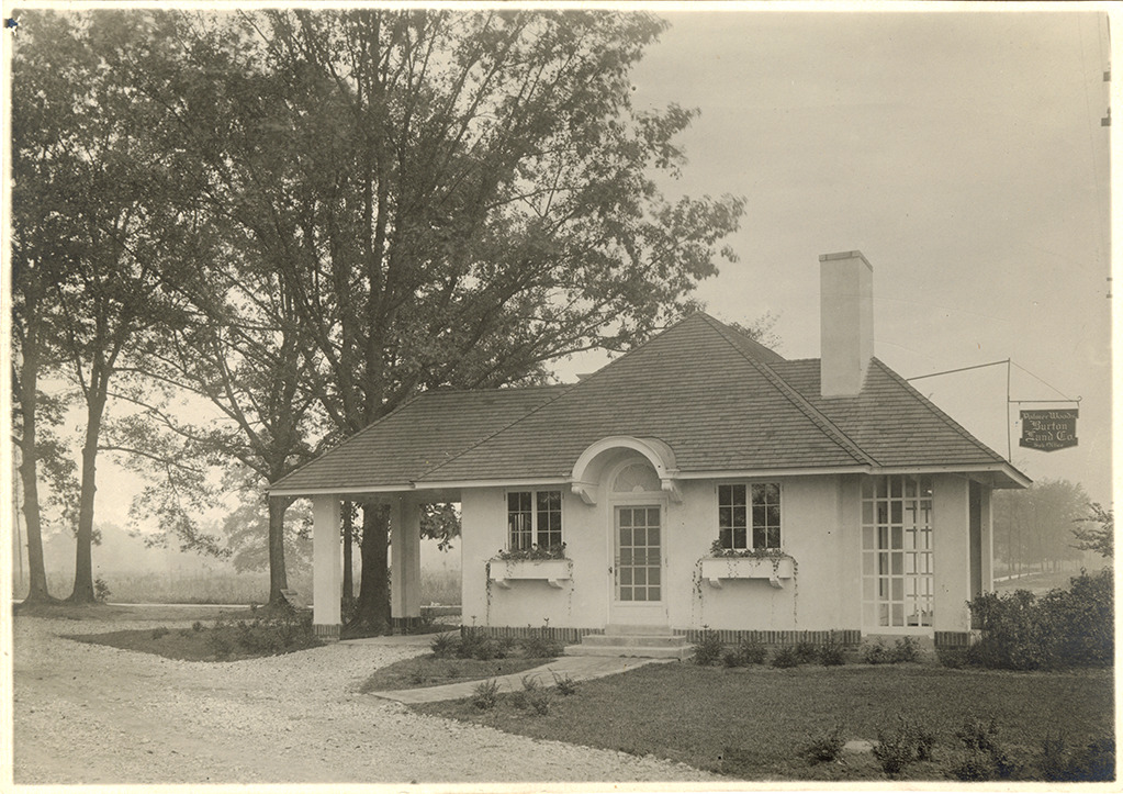 Favorite this☆ Burton Land Company, Palmer Woods Sub-Office Description: View of the Palmer Woods Sub-Office of the Burton Land Company. One-story stucco building has hipped roof and port-cochere. Sign on building reads: "Palmer Woods Sub-Office, Burton Land Co." Details Resource ID: bh030202 Subject: Real estate developers--Michigan--Detroit Real estate development--Michigan--Detroit Real estate business--Michigan--Detroit Office buildings--Michigan--Detroit Photographic prints Date Issued: Unknown year Format: 1 photographic print ; 5 x 7 in. Member of: Burton Historical Collection Filing Location: D/Industries and business houses--Burton Land Co. Rights: Physical rights are retained by DPL. Copyright is retained in accordance with U.S. copyright laws.