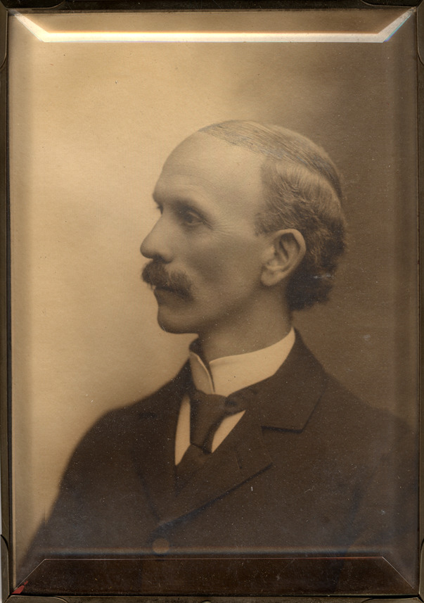 Print on paper under solid glass in metal, spring-held frame of Dr. Edward Frumveller. Back of frame: "The Gale Glass Mount, Bristol, Conn., Huntington & Clark, leading photographers (successors to Millard), 224-226 Woodward Ave., Detroit, Mich., our motto: 'Beauty of pose and excellence of finish.' We hold exclusive right of this patent process for Detroit and vicinity. ..."